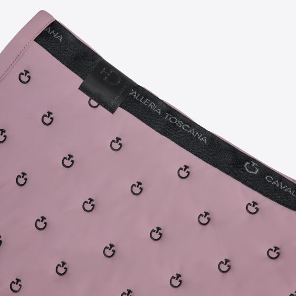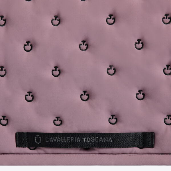 The Cavalleria Toscana embroidered quilted jumping saddle pad is designed for riders seeking the perfect balance of elegance and functionality. Its honeycomb inner structure ensures excellent breathability and comfort for the horse, minimizing the risk of overheating during training and competitions. The quilted design, enhanced with the embroidered CT logo, adds a distinctive and sophisticated touch. Perfectly contoured, it provides even pressure distribution and excellent stability, making it an essential accessory for both daily performance and competition.