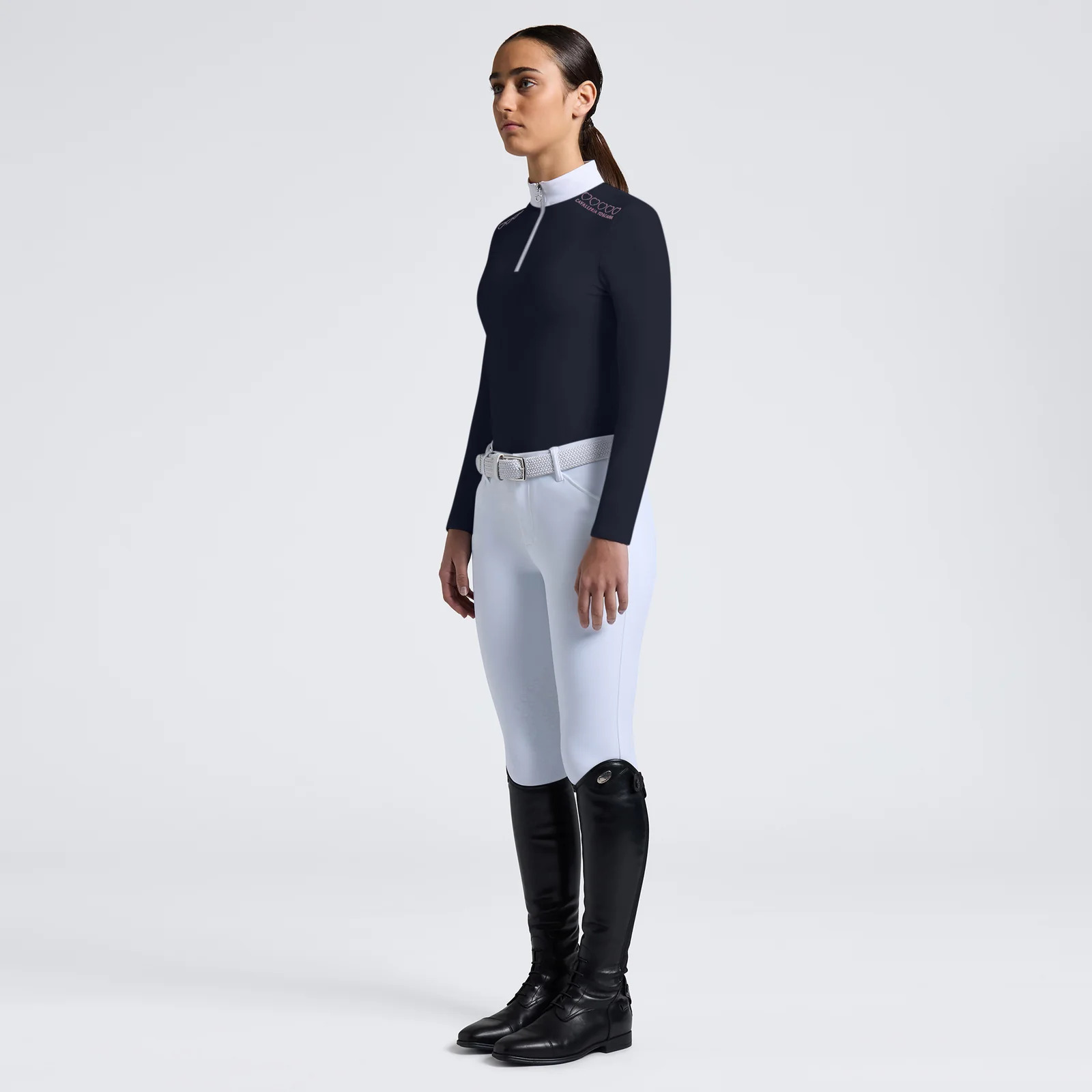 The Cavalleria Toscana long sleeve competition shirt for girls perfectly combines style and functionality, designed for young riders who demand the highest quality. Made from premium technical jersey, this shirt offers exceptional breathability and comfort, ensuring optimal performance during competitions. The design features a white collar with a zip closure, adding a touch of elegance and practicality. Ideal for competitions, this technical shirt also provides a stylish and functional look for leisure activities. Combining practicality and sophistication, this shirt allows young riders to feel confident and comfortable both in and out of the arena. A high-quality garment designed for those who want the best in every situation.