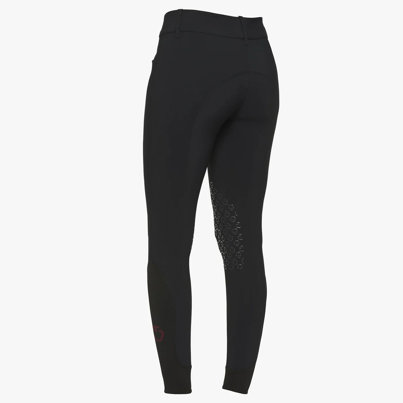 The 4-way stretch technical jersey used for this riding Breeches provides maximum breathability and freedom of movements: this fabric adheres perfectly to your body, without constriction. The high-waisted band comes with an internal grip, wich provides the right fit over your shirt. It also features wide belt loops to accomodate your riding belt.