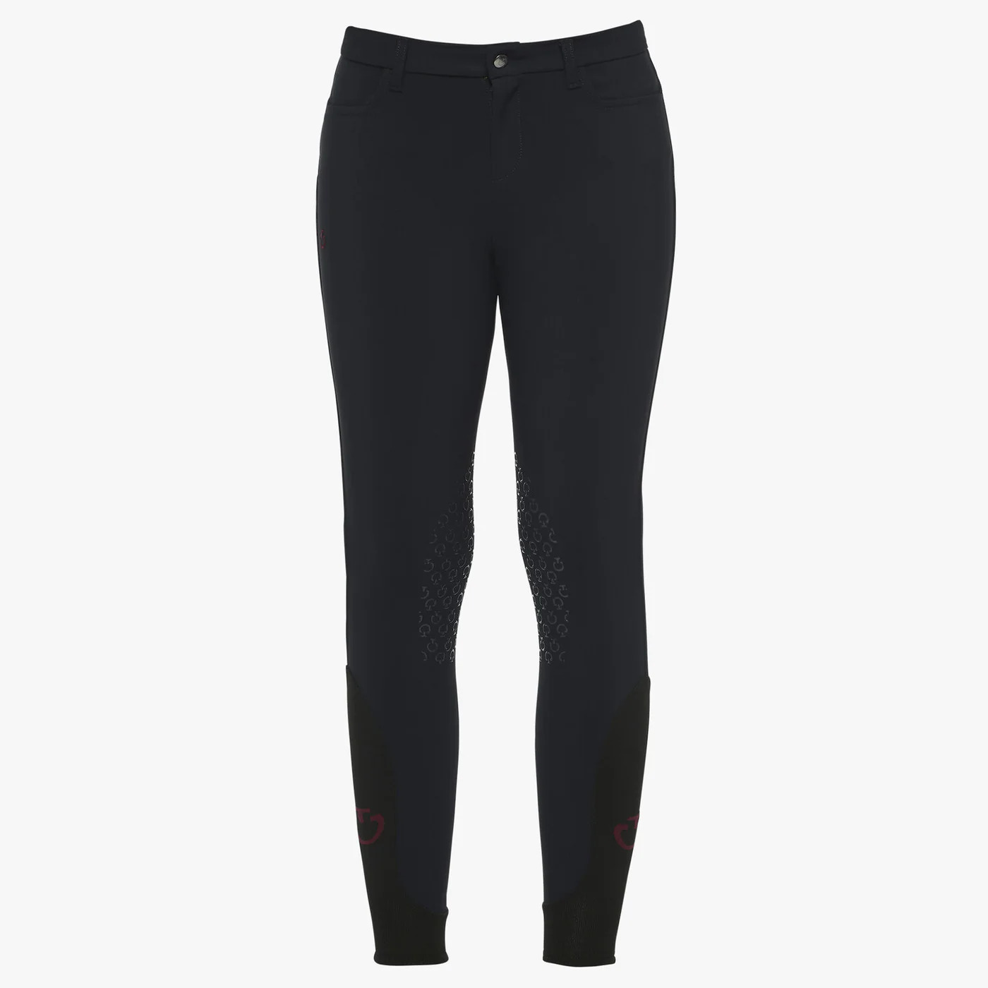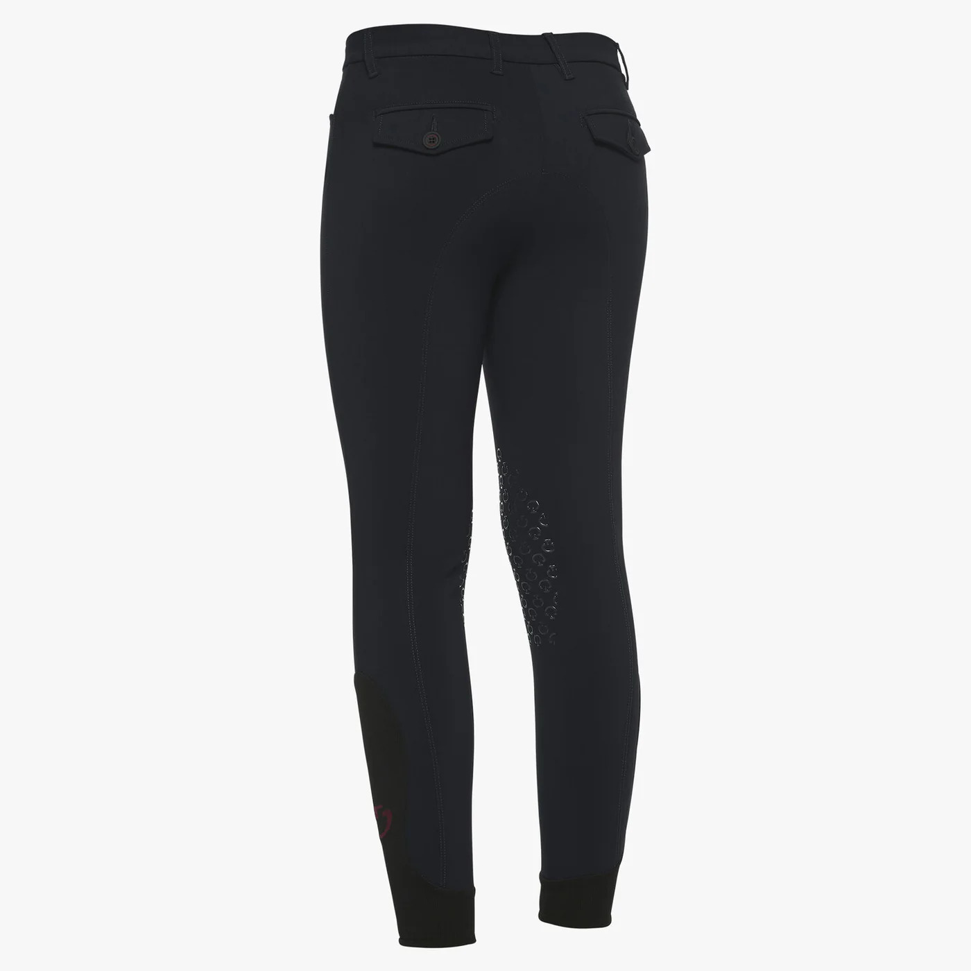 The bi-stretch technical fabric used to make the Cavalleria Toscana riding breeches for boys guarantees maximum comfort by perfectly following the movements of the body during the ride. The fabric is also breathable and antibacterial for the best comfort during training. The transparent grip at the knee allows stability on the crotch, while the elastic socks decorated with a contrasting logo offer a comfortable fit under the boots. The trousers feature two side pockets and a zip and button closure.