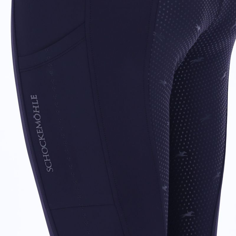 These ladies riding leggings offer the perfect combination of style and performance. Featuring compression for added support, they provide a flattering fit and extra comfort. The full seat silicone print ensures excellent grip and stability in the saddle. Side cell phone pockets offer practical storage, while fake welt pockets with logo print on the back add an elegant touch. The logo silicone print on the left pocket adds a modern accent. Perforations on the sides and lower leg enhance ventilation and provide a better fit. The highly elasticated soft waistband with belt loops ensures comfort and a customizable fit, while the horse logo print on the back belt loop completes the look.